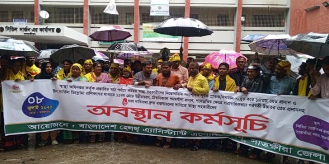 সাতক্ষীরায় ৬ দফা দাবিতে স্বাস্থ্য সহকারীদের অবস্থান কর্মসূচি