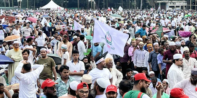 রাজধানীর ঐতিহাসিক সোহরাওয়ার্দী উদ্যানে বাংলাদেশ জামায়াতে ইসলামীর জাতীয় সমাবেশে নেতাকর্মীদের ঢল নেমেছে। সমাবেশ শুরুর অনেক আগেই দলটির নেতাকর্মী ও সমর্থকদের উপস্থিতিতে সোহরাওয়ার্দী উদ্যান প্রায় কানায় কানায় পূর্ণ হয়ে গেছে।