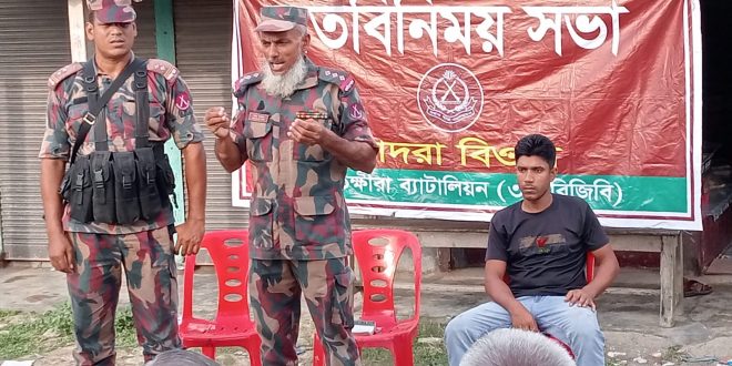 মত বিনিময় সভায় স্থানীয় সীমান্তবর্তী জনপ্রতিনিধি, সচেতন নাগরিক ও গণ্যমান্য ব্যক্তিবর্গ উপস্থিত ছিলেন।