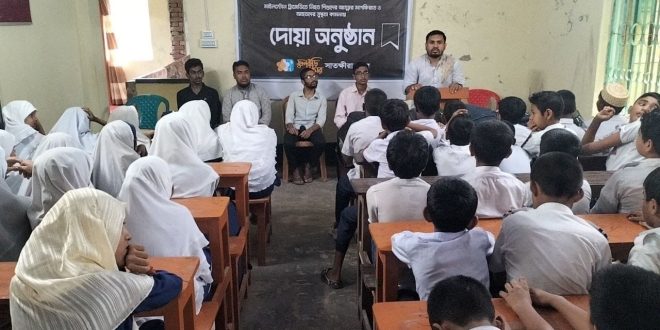 এই আবেগঘন চিত্রকল্পকে সামনে রেখে জাতীয় শিশু-কিশোর সংগঠন ফুলকুঁড়ি আসর সাতক্ষীরা শহর শাখার উদ্যোগে সাতক্ষীরা মোসলেমা একাডেমি প্রাঙ্গণে, ২৩ জুলাই (মঙ্গলবার) সম্প্রতি ভয়াবহ বিমান দুর্ঘটনায় নিহতদের আত্মার মাগফিরাত ও আহতদের সুস্থতা কামনায় একটি বিশেষ দোয়া মাহফিল অনুষ্ঠিত হয়েছে। ফুলকুঁড়ি সাতক্ষীরা শাখার সহকারী পরিচালক ফুয়াদ আব্দুল্লাহর সঞ্চালনায় অনুষ্ঠানে প্রধান অতিথি হিসেবে উপস্থিত ছিলেন শাখা পরিচালক আব্দুল্লাহ আল মামুন, বিশেষ অতিথি হিসেবে উপস্থিত ছিলেন সাতক্ষীরা মোসলেমা একাডেমির শিক্ষক জনাব আলাল হোসেন ও শিল্পী রাশেদুজ্জামান সহ আরো অন্যান্য অতিথিবৃন্দ।