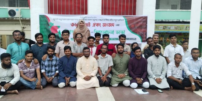 সোমবার ( ৪ আগস্ট) সাতক্ষীরা জেলার শহীদ আব্দুর রাজ্জাক পার্কে কেন্দ্রীয় শহীদ মিনারে বিকাল ৫ঃ৩০ মিনিটে সাবেক সাতক্ষীরা জেলা বৈষম্য বিরোধী ছাত্র আন্দোলনের যুগ্ম সদস্য সচিব মোঃ নাজমুল হোসেন রনির সঞ্চালনায় জুলাই আন্দোলনের কেন্দ্রীয় সংগঠক এবং রাজশাহী বিশ্ববিদ্যালয়ের এমফিএল গবেষক আব্দুর রহিমকে আহ্বায়ক এবং সাবেক সাতক্ষীরা জেলার বৈষম্য বিরোধী ছাত্র আন্দোলনের সদস্য সচিব সোহাইল মাহাদিনকে সদস্য সচিব করে “৩৬ জুলাই ঐক্য সংসদ “নামক সংগঠনটির ৩৬ জন সদস্য বিশিষ্ট আহ্বায়ক কমিটি ঘোষণা হয়েছে।