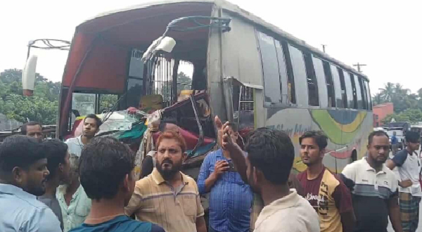 স্থানীয়রা জানান, হঠাৎ বিকট শব্দ শুনে তারা ঘটনাস্থলে ছুটে যান। সেখানে দেখা যায়, রোজিনা পরিবহনের একটি যাত্রীবাহী বাস ও একটি রং বহনকারী কাভার্ড ভ্যানের মুখোমুখি সংঘর্ষ হয়েছে। এতে বাসের যাত্রী ও কাভার্ড ভ্যানচালকসহ অন্তত ১৫ জন আহত হন।