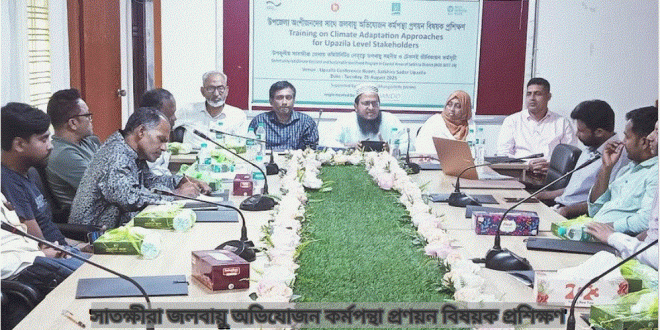 সংবাদদাতা: সাতক্ষীরায় অংশীজনদের সাথে জলবায়ু অভিযোজন কর্মপন্থা প্রণয়ন বিষয়ক প্রশিক্ষণ অনুষ্ঠিত হয়েছে। বেসরকারি উন্নয়ন সংস্থা ’আনন্দ’ এর আয়োজনে প্রশিক্ষণে নিরাপদ পানি, স্যানিটেশন, কৃষি ও বর্জ্য অপসারণ, কর্মসংস্থানসহ বিভিন্ন বিষয় নিয়ে আলোচনা করা হয়।