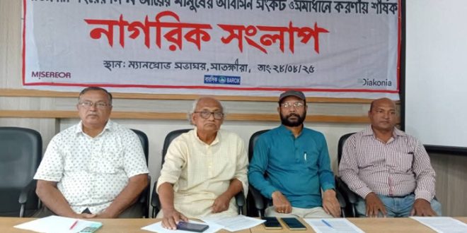 বৃহস্পতিবার (২৮ আগস্ট) সাতক্ষীরার ম্যানগ্রোভ সভাঘরে অনুষ্ঠিত ‘নগরের নিম্ন আয়ের মানুষের আবাসন সংকট ও সমাধানে করণীয়’ শীর্ষক এক নাগরিক সংলাপে এই অসহায় বাস্তবতা তুলে ধরেন ভুক্তভোগীরা।