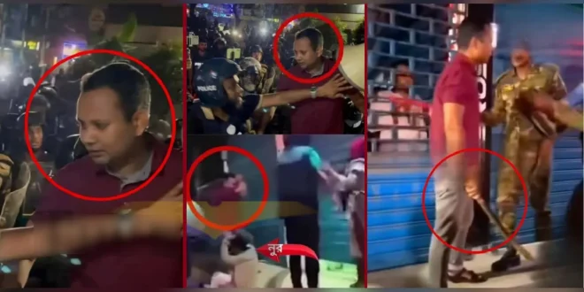 ভিডিওতে দেখা যায়, লাল টি-শার্ট পরিহিত এক যুবক গণঅধিকার পরিষদের সভাপতি নুরুল হক নুরসহ ছাত্রনেতা সম্রাটকে মারধর করেছেন। ঘটনাটি নিয়ে ব্যাপক সমালোচনা শুরু হলে ওই যুবককে শনাক্ত করতে মাঠে নেমেছে পুলিশ।