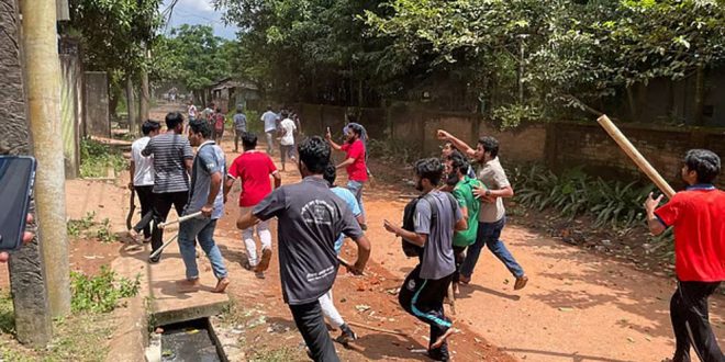 একপর্যায়ে ক্যাম্পাসের পাশে রাতের সংঘর্ষ ঘটনাস্থলে গেলে স্থানীয় লোকজনও লাঠিসোটা নিয়ে এগিয়ে আসে। এতে উভয় পক্ষের মধ্যে উত্তেজনা দেখা দেয়।