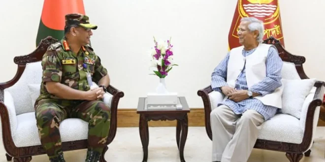 সেনাপ্রধান জেনারেল ওয়াকার-উজ-জামান প্রধান উপদেষ্টাকে অন্তর্বর্তীকালীন সরকারের প্রতি তার পূর্ণ সহযোগিতার আশ্বাস দেন এবং চারপাশে ছড়িয়ে পড়া গুজবে কান না দেওয়ার অনুরোধ জানান।