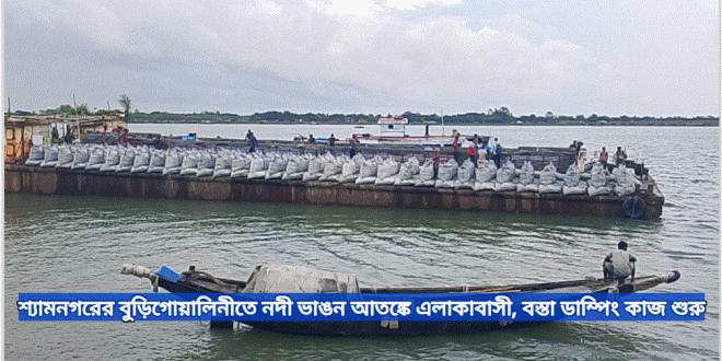 শ্যামনগরের বুড়িগোয়ালিনীতে নদী ভাঙন আতঙ্কে এলাকাবাসী, বস্তা ডাম্পিং কাজ শুরু