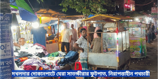 ক্রাইমবাতা রিপোট: সাতক্ষীরা শহরের পথচারীরা ফুটপাত দখলের কারণে চরম ভোগান্তিতে পড়ছেন শহরবাসি। সরেজমিনে দেখা গেছে, শহরের অধিকাংশ ফুটপাত দখল করে নানান পণ্যের দোকান সাজিয়ে বসেছেন ব্যবসায়ীরা।