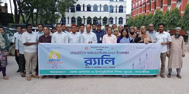 আন্তর্জাতিক সাক্ষরতা দিবস উপলক্ষে সাতক্ষীরায় র্যালি ও আলোচনা সভা অনুষ্ঠিত হয়েছে। জেলা প্রশাসন ও উপানুষ্ঠানিক শিক্ষা ব্যুরো সাতক্ষীরার আয়োজনে সোমবার (৮ সেপ্টেম্বর) সকালে জেলা কালেক্টরেট চত্বর হতে এক বর্ণাঢ্য র্যালি বের হয়ে প্রধান সড়ক প্রদক্ষিণ শেষে জেলা প্রশাসকের সম্মেলন কক্ষে আলোচনা সভায় মিলিত হয় । জেলা প্রশাসক মোস্তাক আহমেদ এর সভাপতিত্বে সভায় বক্তব্য রাখেন অতিরিক্ত জেলা প্রশাসক(সার্বিক) বিষ্ণুপদ পাল,অতিরিক্ত জেলা প্রশাসক (শিক্ষা ও আইসিটি) রিপন বিশ্বাস,অতিরিক্ত পুলিশ সুপার (সদর সার্কেল) শাহিনুর চৌধুরী, সাতক্ষীরা সরকারি কলেজের অধ্যক্ষ এম আবুল হাশেম।