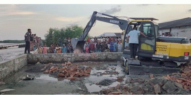 সাতক্ষীরার শ্যামনগরের নওয়াবেঁকী বাজার এলাকায় খোলপেটুয়া নদীর চর দখল করে গড়ে তোলা অবৈধ স্থাপনা উচ্ছেদে অভিযান পরিচালনা করেছে স্থানীয় উপজেলা প্রশাসন।