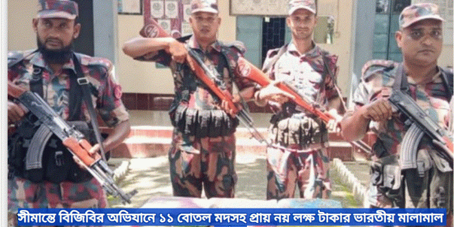 সাতক্ষীরা ও কলারোয়া সীমান্তে মাদক বিরোধী বিশেষ অভিযান পরিচালনা করে ১১ বোতল ভারতীয় মদসহ প্রায় নয় লক্ষ টাকার ভারতীয় মালামাল আটক করেছে বিজিবি। ১৩ সেপ্টেম্বর সাতক্ষীরা ব্যাটালিয়ন (৩৩ বিজিবি) এর অধীনস্থ কুশখালী, কাকডাঙ্গা, মাদরা, কালিয়ানী, বৈকারী, ভোমরা, তলুইগাছা, হিজলদী ও চান্দুরিয়া বিওপির দায়িত্বপূর্ণ এলাকায় মাদক বিরোধী বিশেষ অভিযান পরিচালনা করে ১১বোতল মদসহ প্রায় নয় লক্ষ টাকার ভারতীয় মালামাল আটক করে।