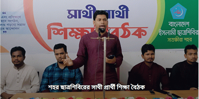 সংবাদদাতা: বাংলাদেশ ইসলামী ছাত্রশিবির সাতক্ষীরা শহর শাখার উদ্যোগে সাথী প্রার্থী শিক্ষা বৈঠক অনুষ্ঠিত হয়েছে। মঙ্গলবার (১৬ সেপ্টেম্বর) বিকাল ৫:৩০ মিনিটে সাতক্ষীরা শহরের মুন্সিপাড়া এলাকায় অবস্থিত আল-আমিন ট্রাস্টের কনফারেন্স রুমে এ সাথী প্রার্থী শিক্ষা বৈঠক অনুষ্ঠিত হয়।