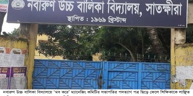 সাতক্ষীরা নবারুণ উচ্চ বালিকা বিদ্যালয়ের শিক্ষার পরিবেশ বিনষ্টকারী অভিযুক্ত মব সৃষ্টিকারী শিক্ষকদের বিরুদ্ধে দৃষ্ট্রান্তমূলক শান্তির দাবী জানিয়েছে বিদ্যালয় ম্যানেজিং কমিটি, বিদ্যালয়ের শিক্ষক ও শিক্ষার্থীরা।