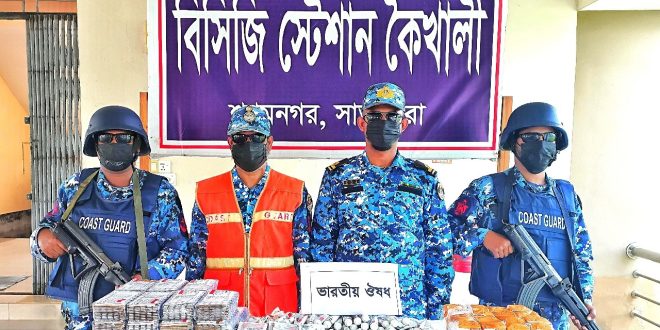 সাতক্ষীরার শ্যামনগরে বিশেষ অভিযানে প্রায় ১ কোটি ২০ লাখ টাকা মূল্যের অবৈধ ভারতীয় ঔষধ জব্দ করেছে কোস্ট গার্ড।