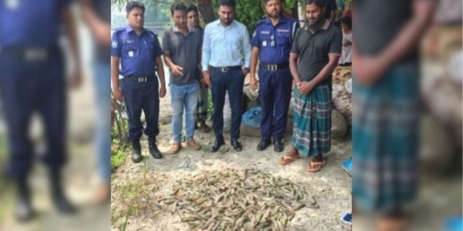 রোববার (২১ সেপ্টেম্বর) বেলা সাড়ে ১১টার দিকে উপজেলার কৃষ্ণনগর ইউনিয়নের কালিকাপুর গ্রামে তার বাড়িতে অভিযান চালিয়ে ২৫ কেজি বাগদা চিংড়ি জব্দ করা হয়। পরে সহকারী কমিশনার (ভূমি) অমিত কুমার বিশ্বাস আদালত পরিচালনা করে জরিমানা আদায় করেন এবং জব্দ করা চিংড়ি পুড়িয়ে নষ্ট করা হয়।