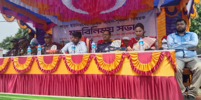 সভায় সভাপতিত্ব করেন জেলা প্রশাসক ও বিজ্ঞ জেলা ম্যাজিস্ট্রেট জনাব মোস্তাক আহমেদ (যুগ্মসচিব)। সঞ্চালনা করেন উপজেলা নির্বাহী কর্মকর্তা মোছা. রনী খাতুন। স্বাগত বক্তব্য রাখেন গাবুরা ইউনিয়ন পরিষদের চেয়ারম্যান জি.এম মাছুদুল আলম।