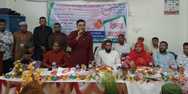 আবাসিক মেডিকেল অফিসার ডাঃ প্রসূন কুমার মন্ডলের সভাপতিত্বে এবং স্বাস্থ্য সহকারী সঞ্জয় কুমার মন্ডল,সাইফুল্লাহ হাসান এবং সি এইচ সি পি আরেফিন সরাফীর সঞ্চালনায় অনুষ্ঠানে বক্তব্য রাখেন-নবাগত উপজেলা স্বাস্থ্য ও প:প: কর্মকর্তা ডাঃ নীতিশ চন্দ্র গোলদার,সাবেক স্বাস্থ্য ও প: প: কর্মকর্তা ডাঃ মোঃ মিজানুল হক,স্বাস্থ্য ও প:প: কর্মকর্তা ডাঃ উম্মে ফারহানা,স্বাস্থ্য ও প:প: কর্মকর্তা ডাঃ মোঃ সাইফুল ইসলাম,অবসরপ্রাপ্ত স্বাস্থ্য পরিদর্শক(ইনচার্জ)বাবু রমেশ চন্দ্র মন্ডল,অবসরপ্রাপ্ত সহকারী স্বাস্থ্য পরিদর্শক মোঃ রফিকুল ইসলাম,অবসরপ্রাপ্ত স্বাস্থ্য সহকারী বাবু সুভাষ চন্দ্র মন্ডল,অবসরপ্রাপ্ত অফিস সহায়ক মোঃ আলতাফ হোসেন,সিনিয়র স্টাফ নার্স রাজিয়া সুলতানা,সহকারি স্বাস্থ্য পরিদর্শক গোলক চন্দ্র বিশ্বাস,স্বাস্থ্য পরিদর্শক আবু মুছা,স্বাস্থ্য সহকারী সাইফুল কবির ও সারাবান তহুরা উষা,সিএইচসিপি বজলুর রহমান,সাইফুজ্জামান সাগর প্রমুখ।
