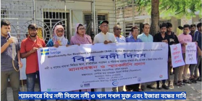 মুন্সীগঞ্জ (শ্যামনগর) প্রতিনিধি: বিশ্ব নদী দিবস উপলক্ষে শ্যামনগরে নদী দখল ও ইজারা মুক্তের দাবীতে মানববন্ধন, সমাবেশ ও নানা কর্মসূচি পালিত হয়েছে। এসময় উপজেলার নদী ও খালগুলোকে বাঁচাতে এবং পরিবেশগত বিপর্যয় রোধে অবিলম্বে দখলদারদের উচ্ছেদ করার দাবি জানিয়েছেন পরিবেশবাদী সংগঠন ও নাগরিক সমাজের প্রতিনিধিরা।