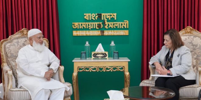 আজ সোমবার (৬ অক্টোবর) বিকাল সাড়ে ৩টায় রাজধানীর বসুন্ধরাস্থ আমীরে জামায়াতের কার্যালয়ে এ সাক্ষাৎ অনুষ্ঠিত হয়। বৈঠকটি অত্যন্ত আন্তরিক ও সৌহার্দ্যপূর্ণ পরিবেশে অনুষ্ঠিত হয়।
