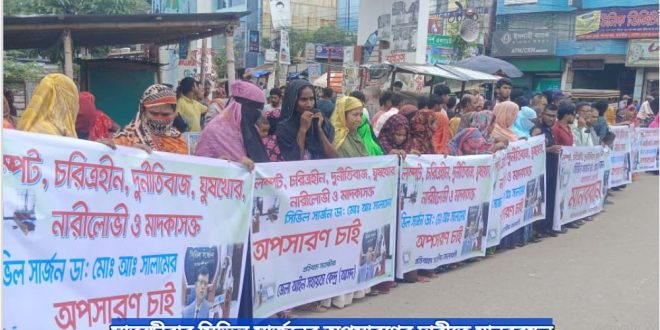 অনতিবিলম্বে এই সিভিল সার্জনের অপসারণ করতে হবে। নাহলে আরো কঠের আন্দোলনের হুশিয়ারী প্রদান করেন বক্তারা।