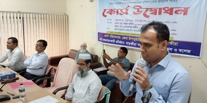শাহ জাহান আলী মিটন , সাতক্ষীরা প্রতিনিধি: প্রাথমিক ও গণশিক্ষা মন্ত্রণালয়ের আওতাধীন উপানুষ্ঠানিক শিক্ষা ব্যুরোর বিশেষ কার্যক্রমের অংশ হিসেবে “কার্যকর সাক্ষরতা ও ব্যবহারিক কর্মদক্ষতা প্রশিক্ষণ (প্রাক-বৃত্তিমূলক পর্যায়)” কোর্সের আনুষ্ঠানিক উদ্বোধন অনুষ্ঠিত হয়েছে।