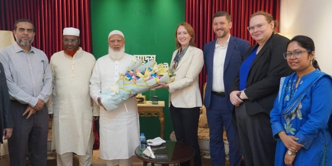 বাংলাদেশ জামায়াতে ইসলামীর আমীর ডা. শফিকুর রহমানের সঙ্গে ঢাকায় নিযুক্ত অস্ট্রেলিয়ান হাইকমিশনার মান্যবর মিস. সুসান রাইল সৌজন্য সাক্ষাৎ করেছেন। আজ ৯ অক্টোবর (বৃহস্পতিবার) সকাল ৯টায় রাজধানীর বসুন্ধরায় আমীরে জামায়াতের কার্যালয়ে এ সাক্ষাৎ ও প্রাতরাশ বৈঠক অনুষ্ঠিত হয়। ডেপুটি হাইকমিশনার মি. ক্লিন্টন পোবকে, পলিটিক্যাল ফার্স্ট সেক্রেটারি মিস. আনা পিটারসনসহ হাইকমিশনের ৪ জন প্রতিনিধি বৈঠকে উপস্থিত ছিলেন।