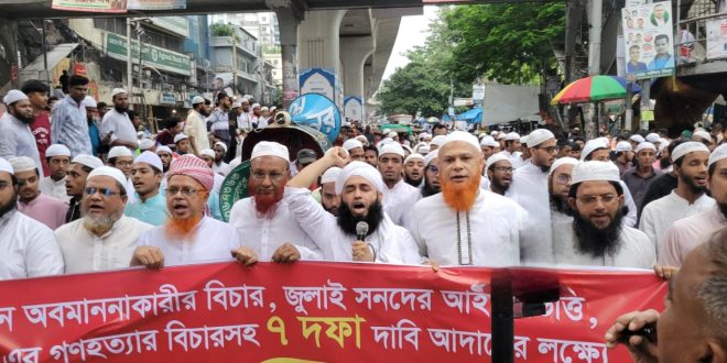 মাওলানা মুজিবুর রহমান হামিদী বলেন, হাজার হাজার শহীদের রক্তের বিনিময়ে ফ্যাসিস্ট হাসিনা সরকারের পতন হয়েছে বটে কিন্তু জনগণের প্রত্যাশা পূরণ হয়নি। পবিত্র কুরআনকে বারবার অবমাননা করা হচ্ছে ইসলামের বিরুদ্ধে একের পর এক ষড়যন্ত্র চলছে। প্রাইমারি স্কুলে নাচ-গানের শিক্ষক নিয়োগ, বাংলাদশে জাতিসংঘের মানবাধিকার অফিস স্থাপন, পতিতাদের ভাতা প্রদান দেশের শান্তি প্রিয় ধর্মপ্রাণ জনতাকে ক্ষুব্ধ করেছে। দেশে এখনো খুন, চাঁদাবাজি, দুর্নীতির বন্ধ হয়নি।