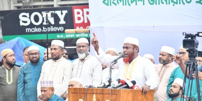 শুক্রবার (১০ অক্টোবর) বিকেলে বাংলাদেশ জামায়াতে ইসলামী ঢাকা মহানগরী উত্তর ও দক্ষিণের যৌথ উদ্যোগে আয়োজিত জুলাই জাতীয় সনদের ভিত্তিতে ফেব্রুয়ারিতে নির্বাচনসহ ৫ দফা দাবি বাস্তবায়নের দাবিতে বায়তুল মোকাররম মসজিদের দক্ষিণ গেইটে অনুষ্ঠিত সমাবেশে প্রধান অতিথির বক্তব্যে তিনি এসব কথা বলেন।