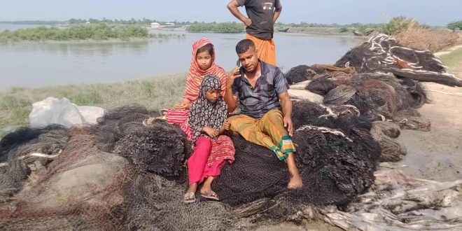 সরজমিনে গিয়ে জানাগেছে,উপজেলার প্রতাপনগর ইউনিয়নের চাকলা গ্রামের নূর মোহাম্মাদ বিশ্বাসের পুত্র খায়রুজ্জামান সাগরে জাল ধরে জীবিকা নির্বাহ করে থাকেন। বেশ কিছুদিন ধরে জাল তৈরীর কাজে ব্যস্ত ছিলেন খাইরুজ্জামান ও তার সঙ্গীরা। বনবিভাগের পাস পেলেই সুমুদ্রে যাবেন মাছ আহরণ করতে। কিন্তু বিধিবাম রবিবার গভীর রাতে দুর্বৃত্তদের দেওয়া আগুনে পুড়ে গেছে তার ১১টি বেড় জাল। খায়রুজ্জামানসহ তার সঙ্গীয় আরও ৩০/৩২ জন মৎস্যজীবি বনবিভাগের অনুমতি পেলে পাঁচ মাসের জন্য দুবলার চর এলাকায় গভীর সুমুদ্রে মাছ ধরার জন্য জাল প্রস্তুত শেষে সোমবার সকালে নৌকায় তোলার কথা ছিল। কিন্তু রাতেই পেট্রোল ব্যবহার করে আগুন দিয়ে বিশ লক্ষ টাকার এগারটি জাল ধ্বংস করা হয়। সর্বশান্ত হয়েছে মৎস্যজীবি খায়রুজ্জামান সহ আরও ৩০জন মৎস্যজীবি। ফলে অনিশ্চিত হয়ে পড়েছে সুমুদ্রে মাছ আহরণ করা। প্রতিনিয়ত বেড়িবাধ ভেঙ্গে প্লাবিত হয়ে কর্মহীন হয়ে পড়ে প্রতাপনগর এলাকার এসকল মানুষ। তাই জলে কুমির আর ডাঙায় ডাকাতের আক্রমণকে উপেক্ষা করে জীবন বাজি রেখে পরিবার ও জীবন জীবিকার তাগিদে গভীর সুমুদ্রে মাছ ধরার কাজ বেছে নিয়েছিল তারা। তাদের মাছ ধরার বেড় জালের সাথে সাথে পুড়ে গেছে তাদের সব স্বপ্ন।