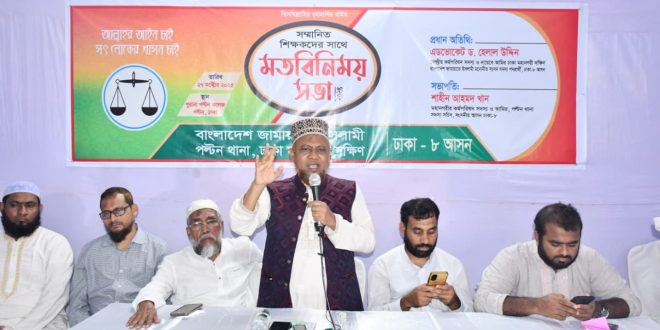 সোমবার (২৭ অক্টোবর) বাংলাদেশ জামায়াতে ইসলামী পল্টন থানার উদ্যোগে পুরানা পল্টন কলেজ অডিটোরিয়ামে শিক্ষকদের সঙ্গে মতবিনিময় সভায় প্রধান অতিথির বক্তব্যে তিনি এসব কথা বলেন।