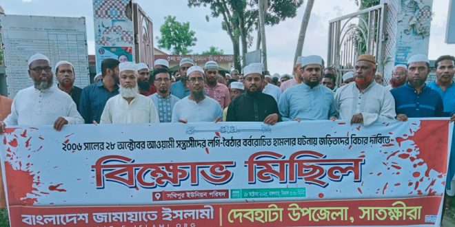 আওয়ামী সন্ত্রাসীদের লগি-বৈঠার বর্বরোচিত হামলার ঘটনায় জড়িতদের বিচার দাবিতে দেবহাটা জামায়াতের বিক্ষোভ মিছিল