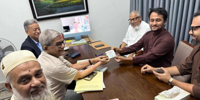 বিএনপির সদস্য ফরম পূরণ করছেন মীর মাহবুবুর রহমান স্নিগ্ধ। ছবি : সংগৃহীত