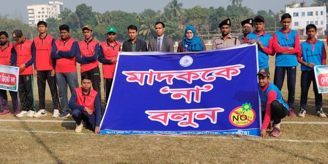 শাহ জাহান আলী মিটন, সাতক্ষীরা প্রতিনিধি : খেলাধুলায় বাড়ে বল, মাদক ছেড়ে খেলতে চল এই প্রতিপাদ্যকে সামনে রেখে মাদক বিরোধী গণসচেতনতা সৃষ্টিতে ক্রিকেট টুর্নামেন্ট-২০২৫ এর আনুষ্ঠানিক উদ্বোধন করা হয়েছে। বুধবার (১০ ডিসেম্বর) সকাল সাড়ে ৯টায় সাতক্ষীরা জেলা স্টেডিয়ামে জেলা প্রশাসন ও মাদকদ্রব্য নিয়ন্ত্রণ অধিদপ্তর সাতক্ষীরা জেলা কার্যালয়ের  উপপরিচালক মিজানুর রহমান শরীফ এঁর সভাপতিত্বে প্রধান অতিথি হিসেবে ক্রিকেট টুর্নামেন্টের আনুষ্ঠানিক উদ্বোধন করেন সাতক্ষীরা জেলা প্রশাসক মিজ্ আফরোজা আখতার ।