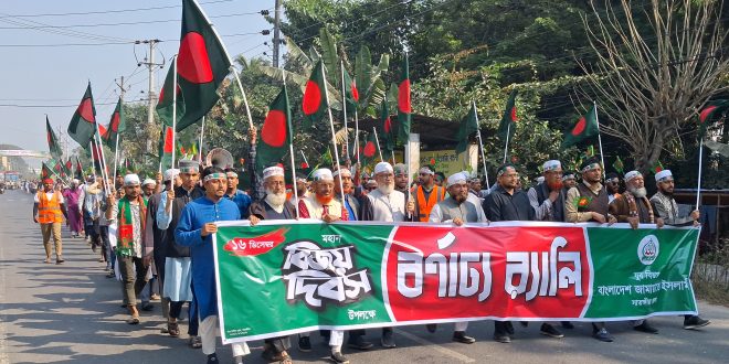 এ সময় বিজয় দিবসের চেতনায় দেশ গঠন, ন্যায়বিচার ও গণতন্ত্র প্রতিষ্ঠার প্রত্যয় ব্যক্ত করা হয়। র্যালিতে জামায়াতে ইসলামী ও অঙ্গসংগঠনের বিপুল সংখ্যক নেতাকর্মী অংশগ্রহণ করেন।
