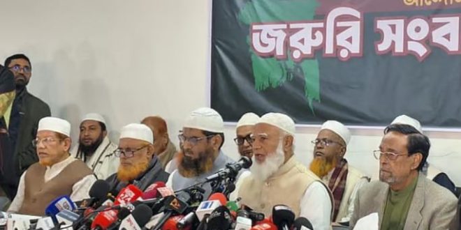 আজ রোববার বিকেলে ঢাকার জাতীয় প্রেসক্লাবে এক জরুরি সংবাদ সম্মেলনে জামায়াতের আমির শফিকুর রহমান এ ঘোষণা দিয়েছেন। তিনি বলেন, বাংলাদেশ যখন জাতীয় জীবনের এক কঠিন বাঁকে এসে দাঁড়িয়েছে, সে সময় দেশকে এগিয়ে নেওয়ার জন্য, দুর্নীতিমুক্ত ইনসাফের বাংলাদেশ গড়ার অঙ্গীকার নিয়ে এত দিন আট দল কাজ করে আসছে। তার সঙ্গে আরও দুটি দল সম্পৃক্ত হয়েছে। কর্নেল (অব.) অলি আহমদের নেতৃত্বাধীন এলডিপি ও এনসিপি। আট দল একসঙ্গে ছিল। আর দুটি দল তাদের সঙ্গে যোগ দিয়েছে।