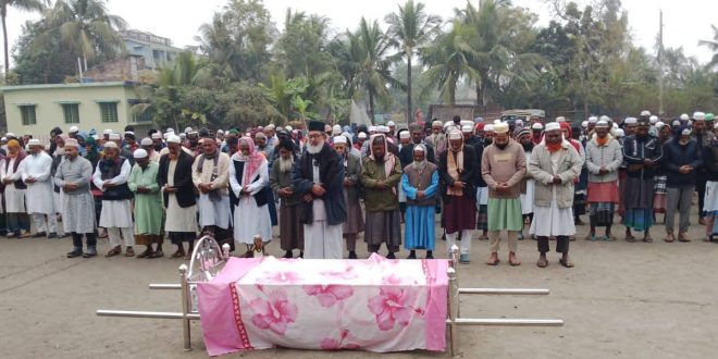 সোমবার জোহর বাদ মোল্ল্যাবাড়ি খামার মাঠে মরহুম জানাজা নামাজ অনুষ্ঠিত হয়। জানাজার নামাজে ইমামতি করেন সাতক্ষীরা-৩ (কালিগঞ্জ-আশাশুনি) আসনের জামায়াত মনোনীত এমপি প্রার্থী মুফতি মুহাদ্দিস মাওলানা রবিউল বাশার।