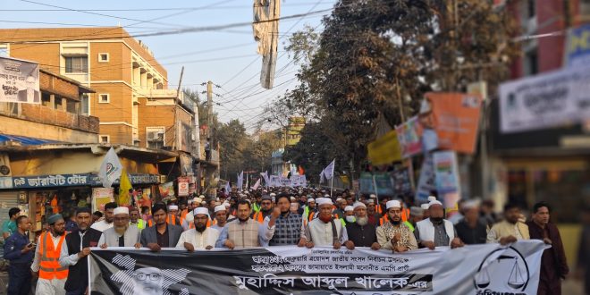 সাতক্ষীরা সংবাদদাতাঃ ত্রয়োদশ জাতীয় সংসদ নির্বাচনের আনুষ্ঠানিক প্রচারণা শুরু করেছেন সাতক্ষীরা সদর ২ আসনের জামায়াতের প্রার্থী মুহাদ্দিস আব্দুল খালেক। ২২ জানুয়ারী বৃহস্পতিবার নিজের নির্বাচনী এলাকা সাতক্ষীরা ২ আসনের (সদর -দেবহাটা) শহীদ আব্দুর রাজ্জাক পার্কে বিকাল সাড়ে ৪টায় সংবর্ধনাসভা আয়োজনের মাধ্যমে তার এই প্রচারণা শুরু হয়। জামায়াত তথা ১০ দলীয় জোটের প্রার্থী মুহাদ্দিস আব্দুল খালেক সংবর্ধনাসভায় প্রধান অতিথির বক্তব্য রাখবেন। সংবর্ধনা সভায় মুহাদ্দিস আব্দুল খালেক বলেন, ‘জনগণের বিপুল সমর্থনে সরকার গঠন করবে ১০ দলীয় জোট’ ইনশাল্লাহ।
