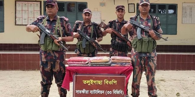 তলুইগাছা বিওপির বিশেষ আভিযানিক দল মেইন পিলার ১৩/৩ এস এর ২ আরবি হতে আনুমানিক ০২ কিঃমিঃ বাংলাদেশের অভ্যন্তরে সাতক্ষীরা সদর থানাধীন গড়িয়াডাঙ্গা ব্রীজ নামক স্থান হতে ৩৮,৫০০/- টাকা মূল্যের ভারতীয় শাড়ি আটক করে। মাদরা বিওপির বিশেষ আভিযানিক দল সীমান্ত পিলার ১৩/৩ এস এর ১১ আরবি হতে আনুমানিক ২০০ গজ বাংলাদেশের অভ্যন্তরে কলারোয়া থানাধীন রাজাপুর নামক স্থান হতে ৬০,০০০/-টাকা মূল্যের ভারতীয় মোবাইলের চাজিংপোর্ট আটক করে।
