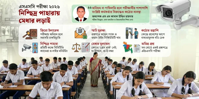 স্টাফ রিপোটার: আসন্ন মাধ্যমিক স্কুল সার্টিফিকেট (এসএসসি) ও সমমান পরীক্ষা-২০২৬ সুষ্ঠু, স্বচ্ছ ও নকলমুক্ত পরিবেশে আয়োজনের লক্ষ্যে প্রত্যেক কক্ষে থাকবে সিসি ক্যামেরা। একই সঙ্গে ডিজিটাল ট্র্যাকিং, সিসিটিভি নজরদারি এবং প্রশ্নপত্রের ত্রিস্তরীয় নিরাপত্তার মধ্য দিয়ে অনুষ্ঠিত হতে যাচ্ছে এবারের পাবলিক পরীক্ষা। এই নীতির আওতায় শুধু পরীক্ষার্থীরাই নয়, কোনো ধরনের অনিয়ম প্রমাণিত হলে দায়িত্বরত কর্মকর্তাদের চাকরিচ্যুতির মতো কঠোর হুঁশিয়ারি দেওয়া হয়েছে। সংশ্লিষ্টরা বলছেন, পরীক্ষার প্রস্তুতির ক্ষেত্রে সরকার কোনো ধরনের ছাড় দিচ্ছে না। সেই সঙ্গে শিক্ষামন্ত্রীও স্পষ্ট জানিয়ে দিয়েছেন, এবার খাতায় কোনো ধরনের ‘গ্রেস মার্ক’ বা অনুকম্পার সুযোগ থাকবে না; শিক্ষার্থীরা যা লিখবে, তার ভিত্তিতেই প্রকৃত নম্বর প্রদান করা হবে। মেধার এই লড়াইকে স্বচ্ছ করতে প্রতিটি পরীক্ষা কেন্দ্রকে আনা হচ্ছে সিসিটিভি ক্যামেরার কঠোর নজরবন্দিতে। শুধু ক্যামেরা স্থাপনই নয়, ধারণকৃত ফুটেজ প্রতি সাত দিন অন্তর সংশ্লিষ্ট শিক্ষা বোর্ডে পাঠানোর নির্দেশ দেওয়া হয়েছে। এছাড়া, প্রশ্নপত্র সুরক্ষায় এবার প্রযুক্তির সর্বোচ্চ ব্যবহার নিশ্চিত করা হচ্ছে। বিজি প্রেস থেকে প্রশ্নগুলো প্রথমে বিশেষ ‘ফয়েল প্যাকে’ এবং পরবর্তীতে একটি ‘ওয়ান টাইম’ সিকিউরিটি খামে ভরা হচ্ছে। এই খামটি এমনভাবে তৈরি যে, একবার খোলা হলে তা আর পুনরায় লাগানো সম্ভব নয়। ট্রেজারি থেকে প্রশ্ন কেন্দ্রে নেওয়ার সময় একজন ট্যাগ অফিসার সার্বক্ষণিক উপস্থিত থাকবেন এবং পরীক্ষা শুরুর মাত্র ১৫ থেকে ২০ মিনিট আগে সবার উপস্থিতিতে খাম খোলা হবে। ফলে প্রশ্ন ফাঁসের চিরাচরিত ছিদ্রপথগুলো এবার পুরোপুরি বন্ধ হতে যাচ্ছে। পরীক্ষা কেন্দ্রের শৃঙ্খলা বজায় রাখতে এবার পরীক্ষার্থীদের ওপর থাকছে কঠোর বিধিনিষেধ। কোনো পরীক্ষার্থীই নিজ প্রতিষ্ঠানে পরীক্ষা দিতে পারবে না। কেন্দ্রে প্রবেশের আগে প্রতিটি শিক্ষার্থীকে নিবিড় ‘নিরাপত্তা চেক’ পার হতে হবে। পরীক্ষার্থীদের দেহ তল্লাশি করে ভেতরে প্রবেশের অনুমতি দেওয়া হবে; নারী পরীক্ষার্থীদের তল্লাশির জন্য নারী শিক্ষকের উপস্থিতি বাধ্যতামূলক করা হয়েছে। এছাড়া, কেন্দ্রসচিব ব্যতীত অন্য কোনো শিক্ষক বা কর্মকর্তা পরীক্ষা কেন্দ্রে মোবাইল ফোন ব্যবহার করতে পারবেন না। সাইবার নজরদারি ও গুজব রোধ: পরীক্ষার আগে গুজব ও ডিজিটাল জালিয়াতি রুখতে সাইবার নজরদারি কয়েক গুণ বাড়ানো হয়েছে। প্রশ্ন ফাঁসের গুজব ছড়িয়ে যারা সাধারণ শিক্ষার্থী ও অভিভাবকদের বিভ্রান্ত করার চেষ্টা করবে, তাদের বিরুদ্ধে তাৎক্ষণিক জেল- জরিমানাসহ কঠোর আইনি ব্যবস্থা নেওয়ার নির্দেশ দেওয়া হয়েছে। সামাজিক যোগাযোগমাধ্যমগুলো