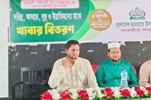 সাতক্ষীরা সংবাদদাতাঃ বাংলাদেশ জামায়াতে ইসলামী সাতক্ষীরা সদর—২ আসনের উদ্যোগে শনিবার (০৫ জুলাই) দুপুরে ‘জুলাই—আগস্ট’ গণঅভ্যুত্থানের প্রথম বার্ষিকী উপলক্ষে দরিদ্র, অসহায়, দুস্থ ও ইয়াতিমদের মাঝে খাবার বিতরণ করা হয়। সাতক্ষীরা শহর জামায়াতের আমীর জাহিদুল ইসলামের সভাপতিত্বে অনুষ্ঠিত খাবার বিতরণ পূর্বক আলোচনা সভায় প্রধান অতিথি হিসেবে উপস্থিত ছিলেন বাংলাদেশ জামায়াতে ইসলামীর কেন্দ্রীয় …