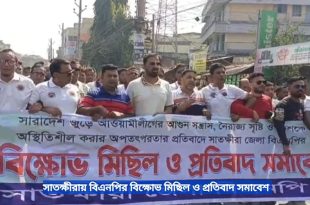 নিজস্ব প্রতিনিধি: সারাদেশব্যাপী আওয়ামী লীগের আগুন সন্ত্রাস, দমন-পীড়ন, নৈরাজ্য সৃষ্টি ও দেশকে অস্থিতিশীল করার অপতৎপরতার প্রতিবাদে সাতক্ষীরা জেলা বিএনপির উদ্যোগে বিক্ষোভ মিছিল ও প্রতিবাদ সমাবেশ অনুষ্ঠিত হয়েছে। বৃহস্পতিবার (১৩ নভেম্বর) বেলা সাড়ে ১১টার দিকে সাতক্ষীরা নিউমার্কেট মোড় থেকে বিক্ষোভ মিছিলটি শুরু হয়। মিছিলটি শহরের প্রধান প্রধান সড়ক প্রদক্ষিণ করে খুলনা রোড …