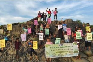 উপকূল বাঁচাও, দেশ বাঁচাও’ এই প্রতিপাদ্যকে সামনে রেখে স্বেচ্ছাসেবী যুব সংগঠন সিডিও ইয়ুথ টিমের আয়োজনে সাতক্ষীরার শ্যামনগরে জলবায়ু ধর্মঘট পালিত হয়েছে। গতকাল বৃহস্পতিবার উপজেলার নওয়াবেঁকী বাজার সংলগ্ন খোলপেটুয়া নদীর বুকে জেগে ওঠা বালির চরে ঘণ্টা ব্যাপী এই কর্মসূচি পালিত হয়। এ সময় যুবরা ‘জীবাশ্ম নয়, চাই সবুজ জ্বালানি’, ‘আমাদের ভবিষ্যৎ …