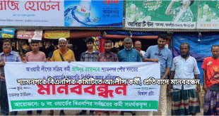 শ্যামনগর প্রতিনিধি: সাতক্ষীরার শ্যামনগরে আ.লীগের কর্মী আমিনুর রহমানকে ওয়ার্ড বিএনপির সভাপতি নির্বাচিত করার প্রতিবাদে মানববন্ধন হয়েছে। বুধবার বিকাল তিনটার দিকে ৬নং ওয়ার্ড বিএনপির কর্মী সমর্থকদের ব্যানারে পৌরসদরের টার্মিনাল এলাকায় উক্ত মানবববন্ধন অনুষ্ঠিত হয়। মানববন্ধনে অংশ নিয়ে বক্তারা অভিযোগ করেন সাবেক ইউপি সদস্য আ.লীগের রাজনৈতিক কর্মসুচিতে নিয়মিত অংশ নিতেন। সে সক্রিয়ভাবে আ.লীগের …