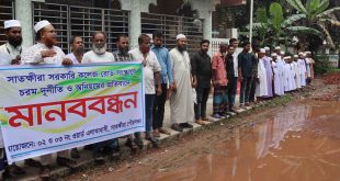 সাতক্ষীরা প্রতিনিধি: সাতক্ষীরার জনগুরুত্বপূর্ণ সরকারি কলেজ সড়ক সংস্কারের দাবিতে মানববন্ধন ও বিক্ষোভ সমাবেশ অনুষ্ঠিত হয়েছে। এই সমাবেশ থেকে আগামী এক সপ্তাহের মধ্যে সংস্কার না করা হলে সড়ক অবরোধ কর্মসূচি পালনের ঘোষণা দেওয়া হয়। বুধবার (৫ আগষ্ট) স্থানীয়রা শহরের মেসলেমা একাডেমি সংলগ্ন সড়কে এ মানববন্ধন ও বিক্ষোভ সমাবেশের আয়োজন করে। মানববন্ধন …