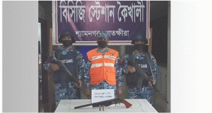 সুন্দরবনের মাউন্দে নদী সংলগ্ন এলাকায় অভিযান চালিয়ে একটি একনলা বন্দুক ও দুই রাউন্ড তাজা কার্তুজ জব্দ করেছে কোস্ট গার্ড। বৃহস্পতিবার (৩১ জুলাই) কোস্ট গার্ডের মিডিয়া কর্মকর্তা লেফটেন্যান্ট কমান্ডার সিয়াম-উল-হক এ তথ্য জানান। তিনি বলেন, গোপন সংবাদের ভিত্তিতে বুধবার বিকালে কোস্ট গার্ড কৈখালী স্টেশনের সদস্যরা সাতক্ষীরার শ্যামনগর উপজেলার মাউন্দে নদী সংলগ্ন …