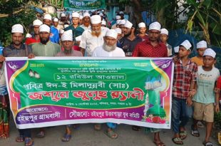 পবিত্র ঈদে মিলাদুন্নবী (সা.) উপলক্ষে সাতক্ষীরা পৌরসভার সাত নাম্বার ওয়ার্ডের রইচপুরে এক বর্ণাঢ্য জশনে জুলুস র্যালি অনুষ্ঠিত হয়েছে। ১২ রবিউল আউয়াল মহানবী হযরত মুহাম্মদ (সা.)-এর জন্ম ও ওফাত দিবস স্মরণে শনিবার (৬ সেপ্টেম্বর) সকালে রইচপুর গ্রামবাসী এবং রইচপুর উত্তরপাড়া যুব কমিটির উদ্যোগে এই র্যালিটির আয়োজন করা হয়। সাতক্ষীরার রইচপুর আব্দুর …